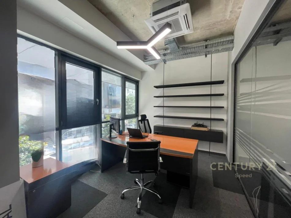 Hapësira është e organizuar në koncept open space, duke ofruar fleksibilitet maksimal për ndarjen dhe shfrytëzimin efikas të ambientit, sipas natyrës së aktivitetit. Zyra është e pajisur me sistem qendror kondicionimi dhe aspirimi, që siguron kushte optimale pune dhe komoditet.