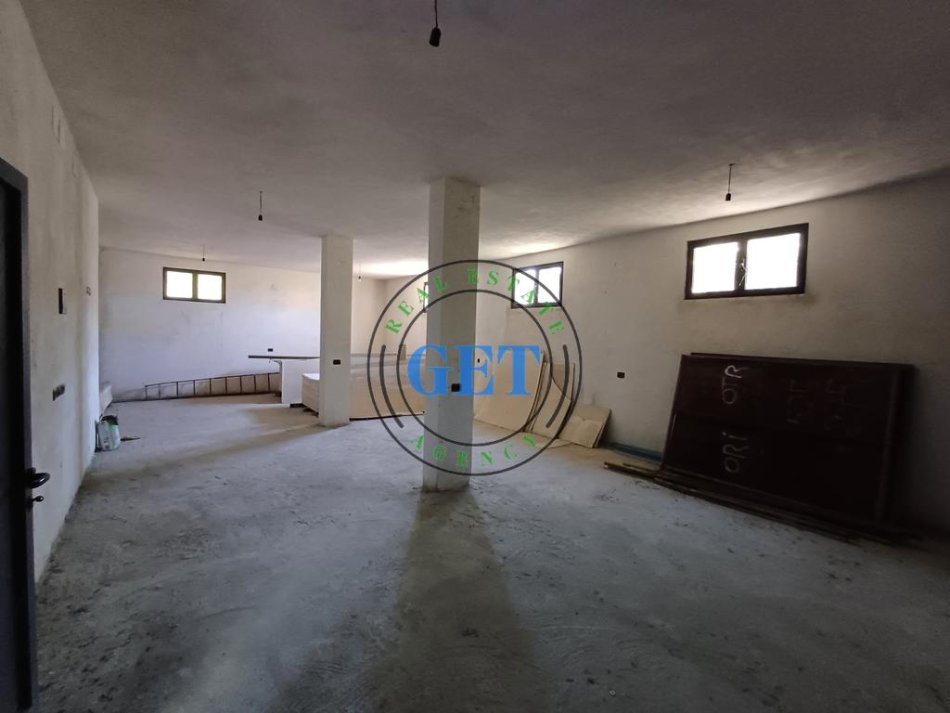 •Kati përdhe (103 m²): Garazh i madh me mundësi përshtatjeje për çdo lloj aktiviteti biznesi (dyqan, zyrë, servis, depo, etj.) – me dalje direkte në rrugë kryesore
