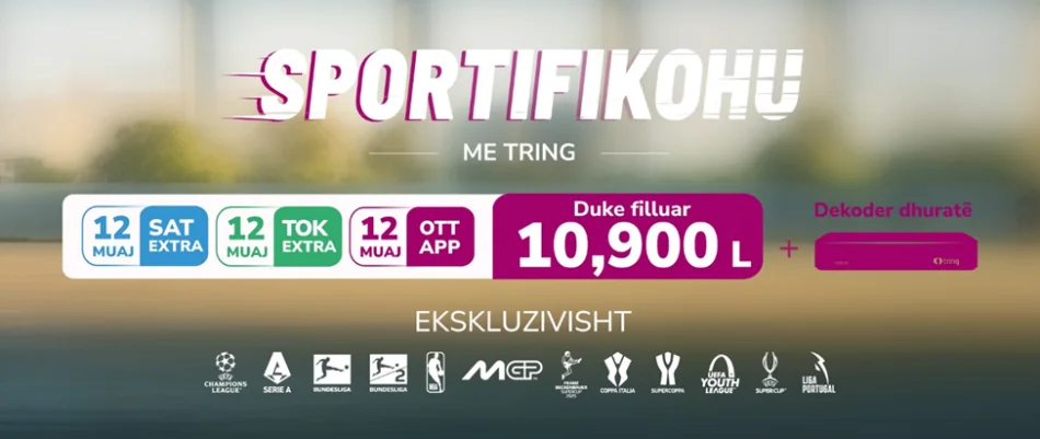 Për të ndjekur më shumë se 250 ndeshje e gara çdo muaj, përfitoni nga oferta promocionale e momentit duke filluar nga 10.900 lekë për abonimet 12-mujore Extra në paketat tokësore, satelitore dhe OTT App.