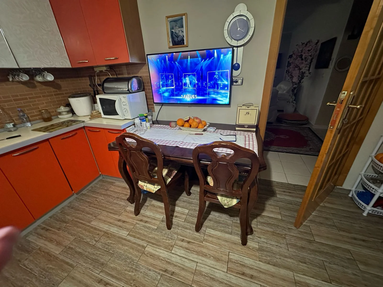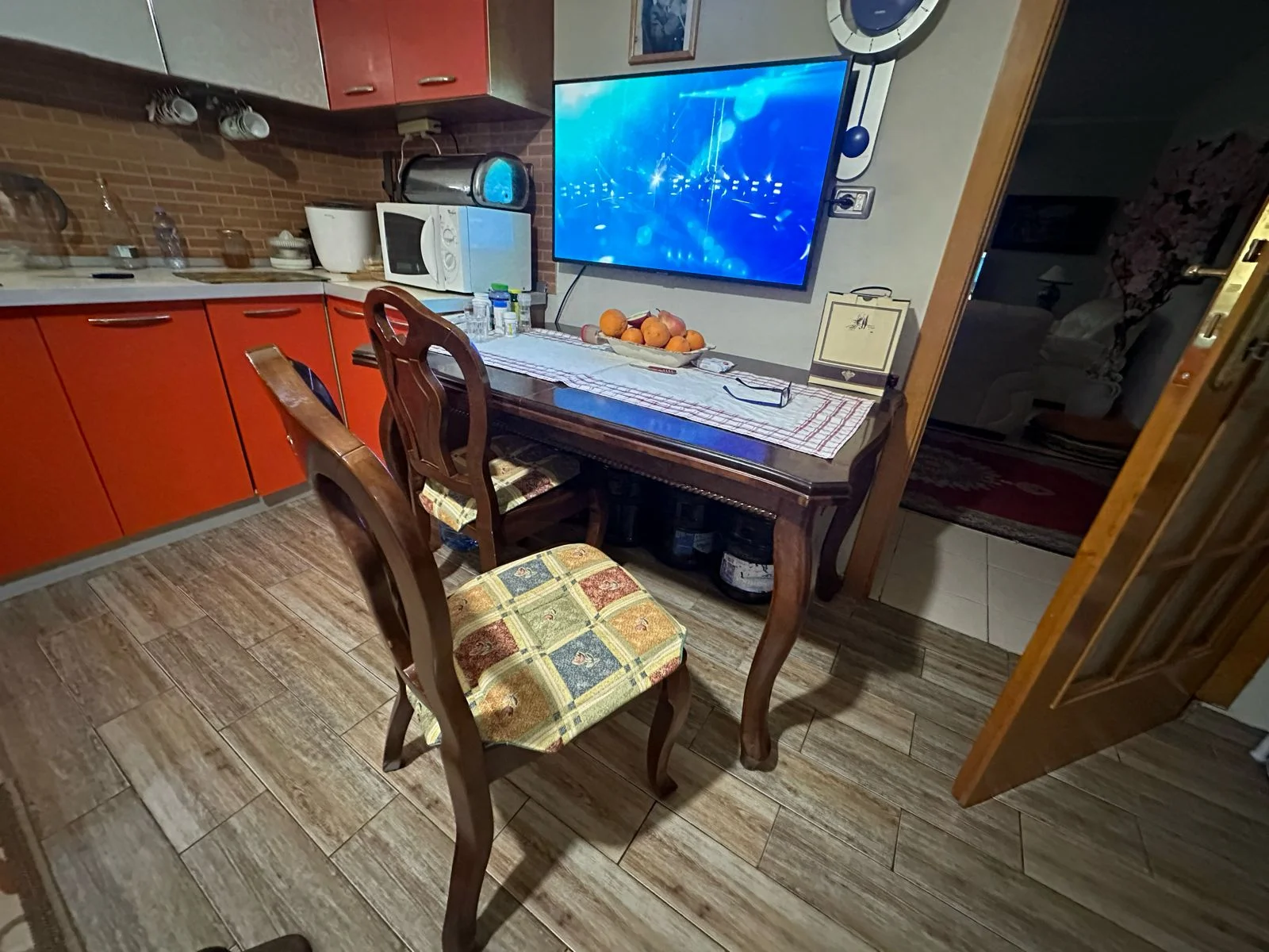 tavoline ngrenie qe hapet behet e madhe ,per darka familjare,me 6 karrike. eshte dru 100%. mund te negocojme per cmimim.