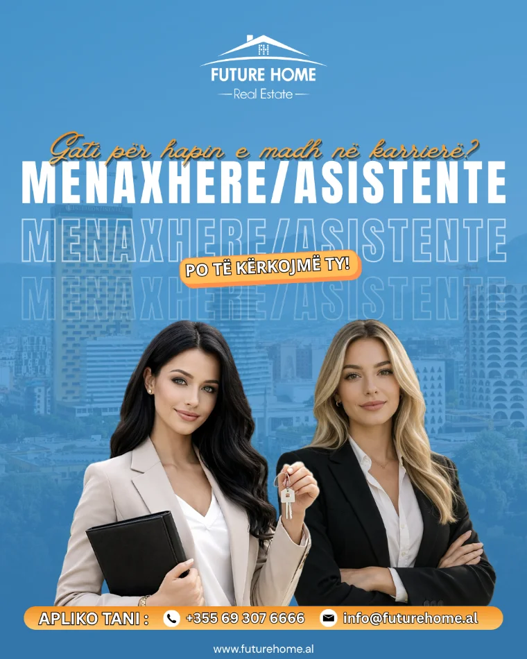 • Tiranë, Ofrohet Vend Pune Asistente /Menaxhere – Future Home Real Estate