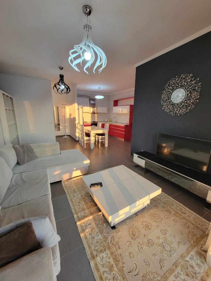 Organizohet : korridor, ambjent ndenje + ambjent gatimi, dy dhoma gjumi, dy tualete, dhe nje ballkone