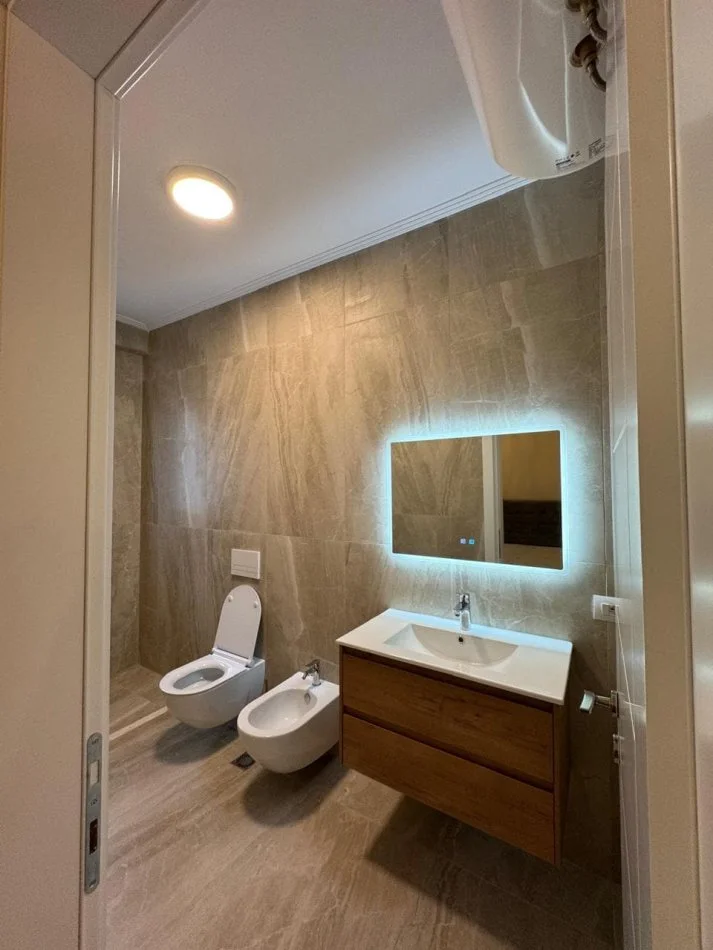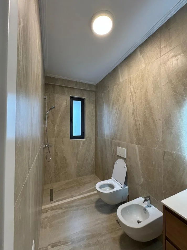 Ne Porcelan, ne rrugen Xhanfize Keko, tek Kompleksi Erli, jepet me qera apartament 2+1 tualet, ballkon, me siperfaqe 109 m2, kati i 3, pallat i ri, ashensor, pa