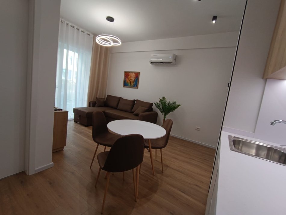 Apartamenti është i super mobiluar me kushte shumë të mira, me arkitekt. Ndodhet në katin e dytë të banimit. Organizohet ne ambient ndenje dhe gatimi, dhoma gjumit, tualet dhe ballkon.