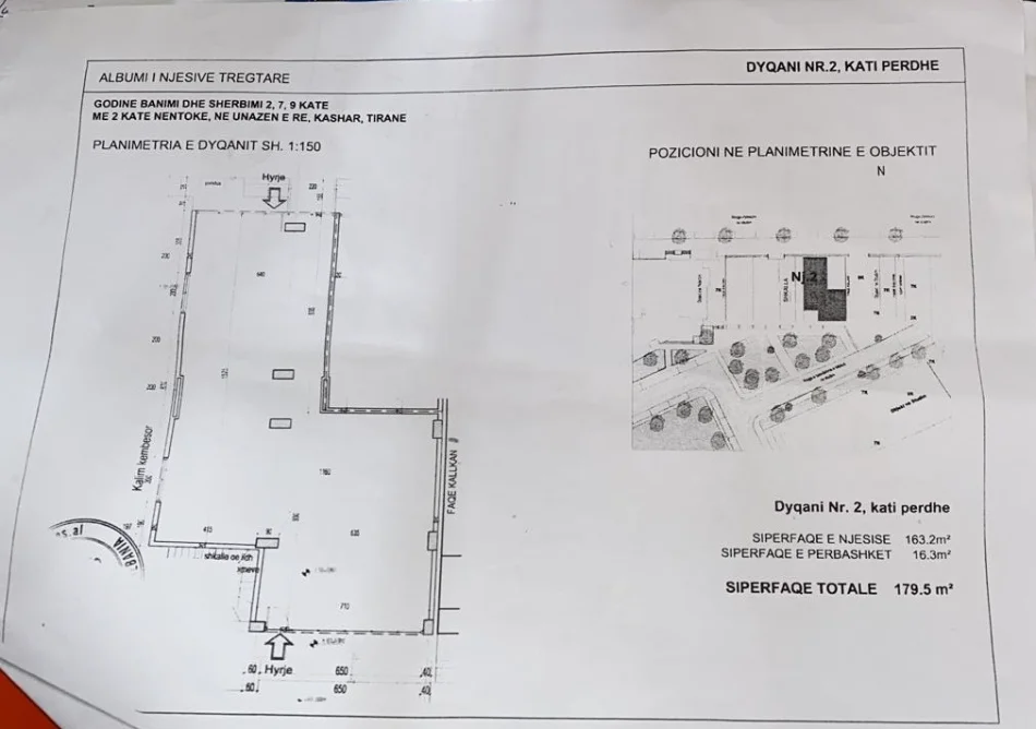 Ofrohet për qira një ambient komercial me sipërfaqe totale 179.5 m² (163.2 m² neto), i pozicionuar