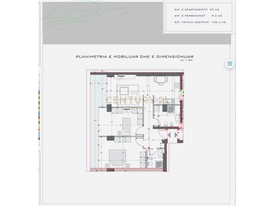 Tirane, jepet me qera ambjent biznesi Kati 4, 106 m² 1.200 € (Komuna Parisit)