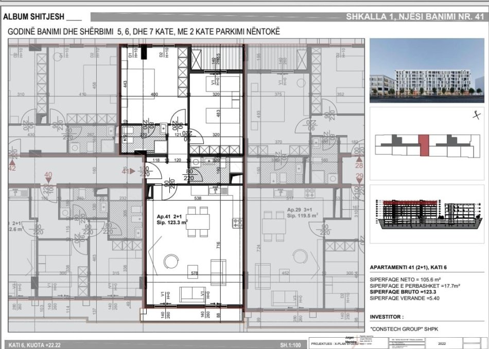 Jepet me qira apartament 2+1+2 me sipërfaqe 123.3 m² dhe verandë 5.5 m², i pozicionuar në katin e 6-të të një godine të re, buzë rrugës kryesore te Eagle Residence, pranë ish-Sheshit Shqiponja.