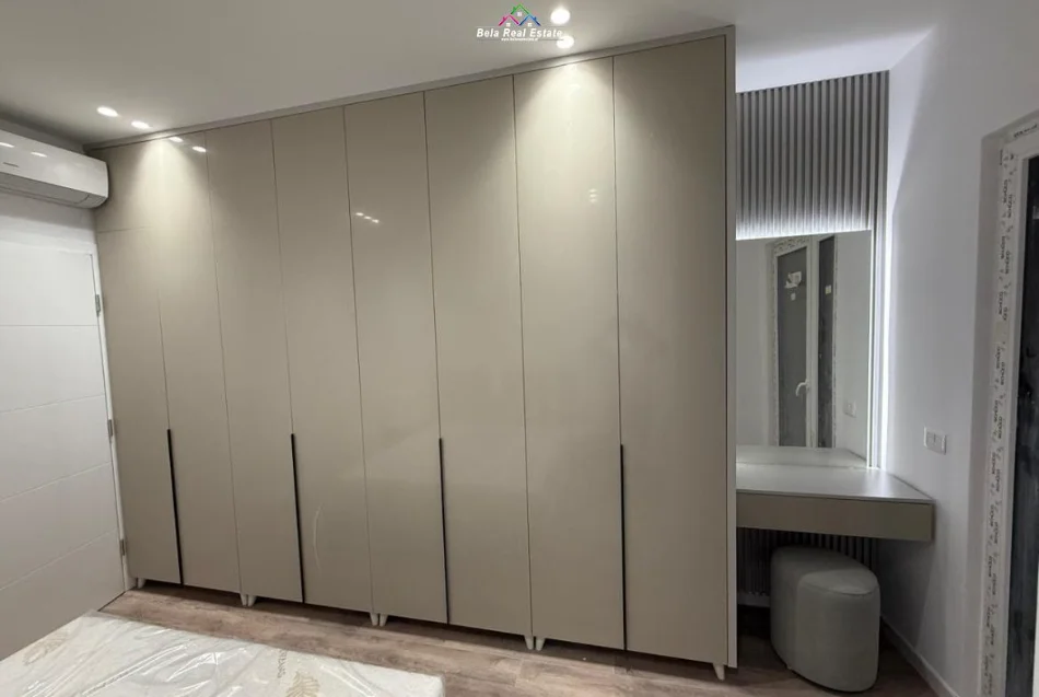 Ne 5 Maj, tek Emerald Center, jepet me qera apartament, 1+1, me siperfaqe 81 m2, kati 2. banim, pallat i ri, ashensor, tualet, ballkon, parket, kondicioner, ne