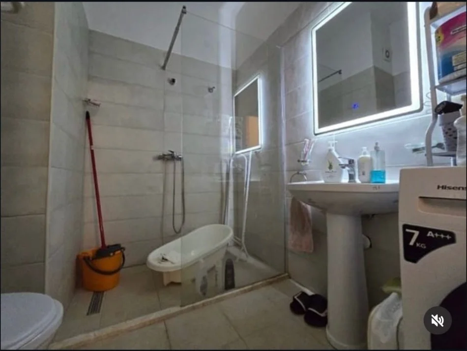 Ky apartament 1+1 ndodhet në katin e 4-t në Kompleksin Mangalem nezonën e Ali Demit, Tiranë, dhe ofrohet me qira për 450€ në muaj.