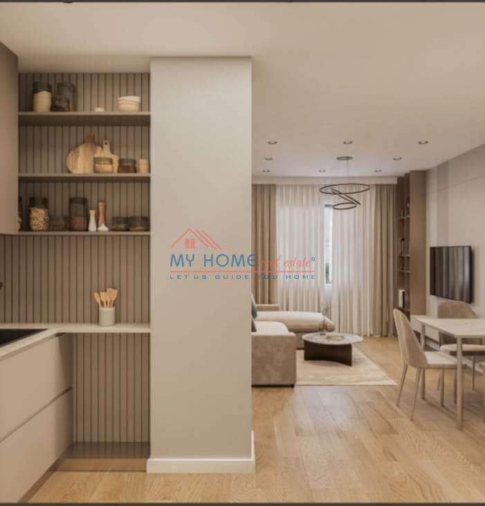Rruga 5 Maji, prane Shkolles Tirana Jone, jepet me qera apartament 1+1 me siperfaqe 64m2, kati 6 me ashensor. Apartamenti organizohet soxhorno, dhome gjumi, tualet dhe ballkon. Apartamenti ofrohet me qera totalisht i arreduar sipas projektit ne foto. Gati per te banuar ne 15 shtator.
