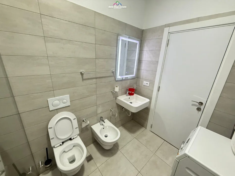 Tek Rruga Riza Cerova, prane Shkolles se Kuqe, jepet me qera apartament 1+1, me siperfaqe 72m2, kati 7, pallat i ri me ashensor, tualet, ballkon, parket, kondicioner ne cdo dhome, e mobiluar. D.F