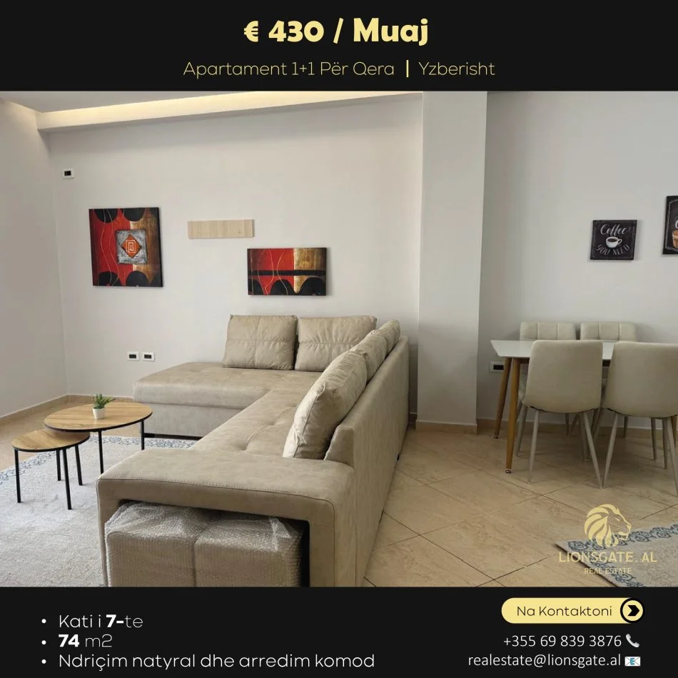 🏡 APARTAMENT 1+1 ME QIRA – YZBERISHT