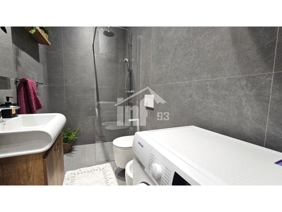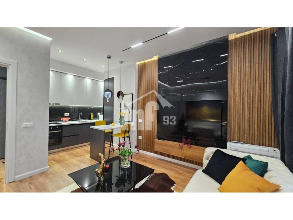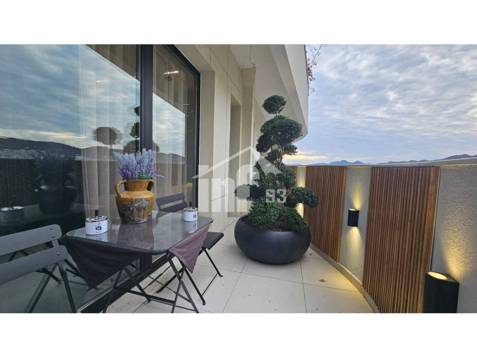Apartament për qira 1+1 me sipërfaqe 70 m2, kati i 9-të me orientim jug-perëndim . Është i organizuar nga ambient ndenje + kuzhinë + ngrënie, dhomë gjumi, tualeti dhe ballkoni me pamje shumë te bukur. Apartamenti është komplet i investuar me mobilim modern, pajisje dhe rifinitura shumë cilësore, i shtruar i gjithi me parket, sistem kondicionimi, dritaret me grila etj.