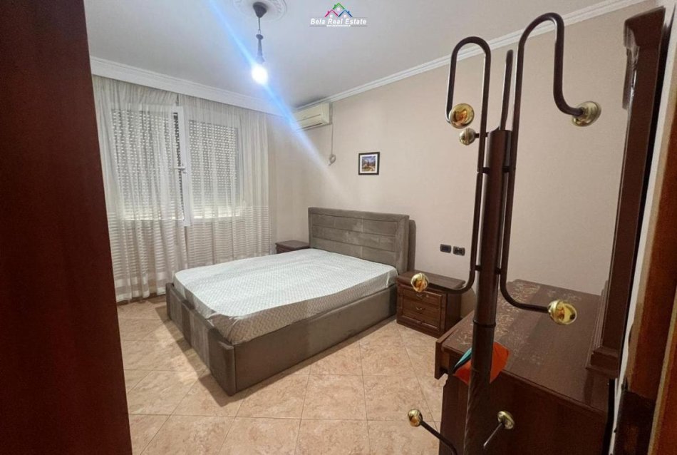 Ne Bllok, rruga Sami Frasheri, prane Juveniles, jepet me qera apartament 1+1, me siperfaqe 75 m2, kati 9, pallat i ri me ashensor, tualet, ballkon, 2 kondicioner, e mobiluar.D.F