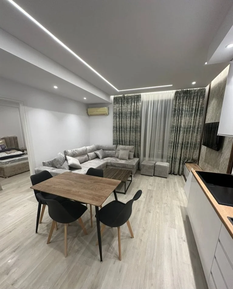 Jepet me qera një apartament 1+1 i rregulluar me shumë kujdes dhe stil. Hapësirat janë të organizuara në mënyrë të zgjuar, duke ofruar komoditet maksimal për përdorim të përditshëm. Sallon ndenjeje i ndriçuar, kuzhinë funksionale e pajisur me të gjitha pajisjet kryesore, dhomë gjumi komode dhe tualet modern.