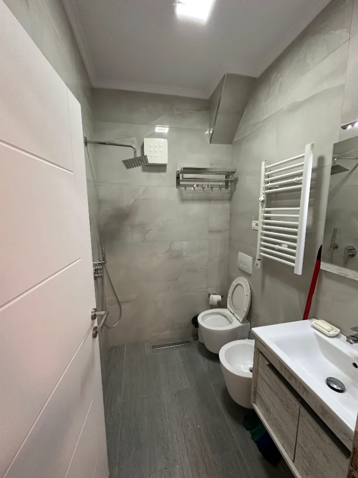 Tek Brryli, bulevardi Bajram Curri, prane Bar Votres, jepet me qera apartament 1+1, me siperfaqe 60 m2, kati i pare banim, pallat i ri me ashensor, tualet, kondicioner, e mobiluar. D.F