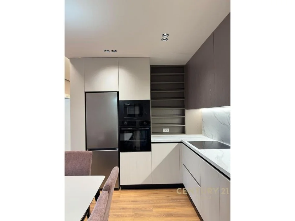 Ndodhet ne katin e dyte te nje ndertimi shume cilesor me fasade te ventiluar. Apartamenti jepet teresisht i mobiluar me cilesi dhe moderne dhe i pa banuar me perpara. Pajisje të reja elektroshtëpiake (sobë, lavastovilje, , etj.) Dhomë gjumi me dyshek dhe dollap të bollshëm. Tualet Inkaso & hidrosanitare premium, Smart TV, kondicioner.