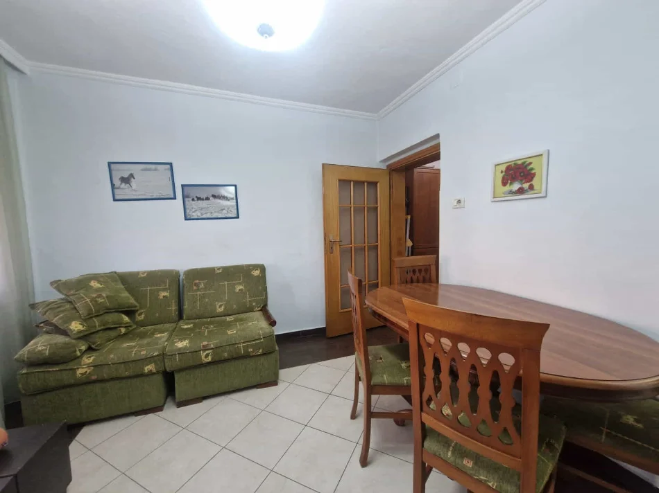 Rruga e Kavajes, prane Dumres, jepet me qera apartament 1+1, me siperfaqe 55 m2, kati i 3, pallat i egzistues, pa ashensor, tualet, korridor, kondicioner, e mobiluar. A.I.