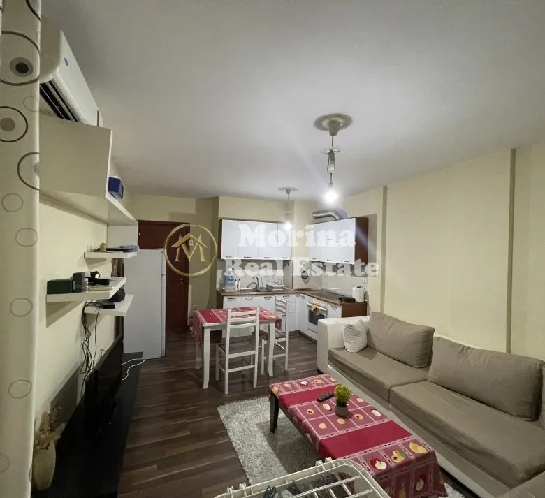 Jepet me qera apartament 1+1, me një sipërfaqe prej 65m² dhe gjendet në katin e 3 të një pallati te ri. Hyrja ka organizim shume të mirë, ofrohet e mobiluar dhe përbëhet nga salloni i ndenjes, ambienti i gatimit, 1 dhome gjumi, tualeti dhe ballkoni.