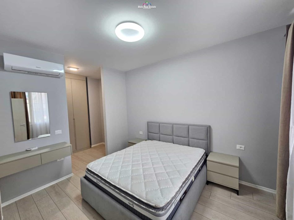 Ne Astir, rruga Feizi Himzo, ne kompleksin River Rezidence, jepet me qera apartament 1+1, tualet, ballkon, me siperfaqe 70 m2, kati i 3, pallat i ri me ashensor, i shtruar me parket, kondicioner, e mobiluar ne menyre bashekohore. G.T/A.K.