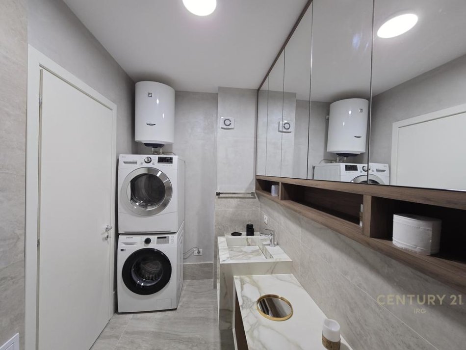 Ndodhet ne katin e trete te nje ndertimi shume cilesor me fasade te ventiluar. Apartamenti jepet teresisht i mobiluar me cilesi dhe moderne. Pajisje të reja elektroshtëpiake (sobë, lavastovilje, air fryer, tostier, etj.) Dhomë gjumi me dyshek dhe dollap të bollshëm. Tualet Inkaso & hidrosanitare premium, Smart TV, kondicioner.