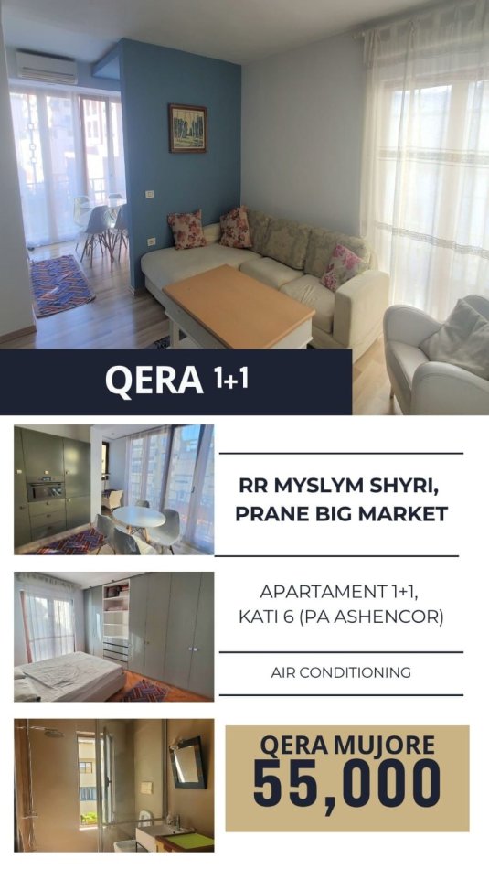 Tirane, jepet me qera apartament 1+1 Kati 5, 64 m² 550 € (Myslym Shyre)