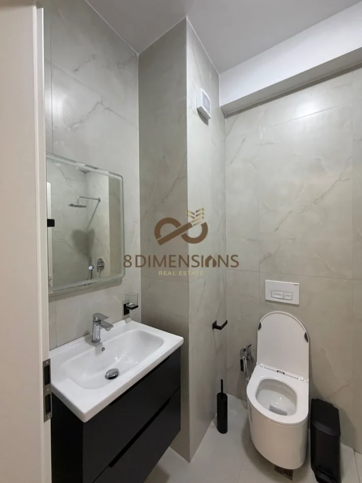 Jepet me qera Apartament 1+1 ne Ali Dem te Rezdienca Kadiu me siperfaqe 57m2, ne katin 9 te nje pallati te ri me ashensor. Prona ka orientim me diell dhe nje organizim teper funksional 1 dhome gjumi, sallon ,kuzhine , tualet me dritare, ballkon me dalje nga salloni.
