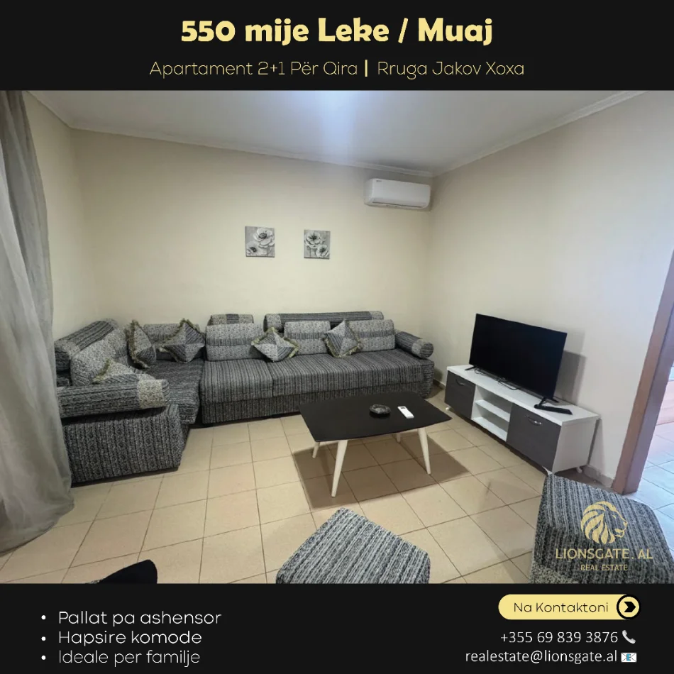 🏙️ APARTAMENT 2+1 ME QIRA – RRUGA JAKOV XOXA, TIRANË