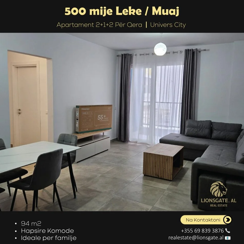 🏙️ APARTAMENT 2+1+2 ME QIRA – UNIVERS CITY, TIRANË