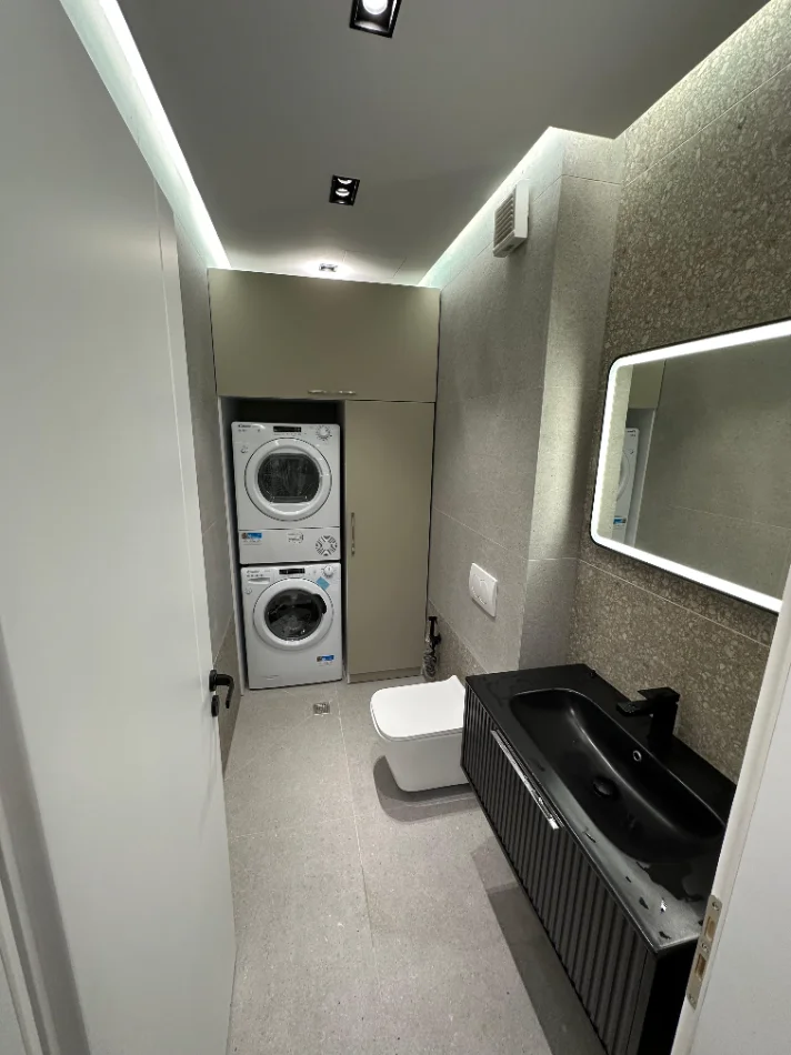 Apartamenti disponon 1 post parkimi me kosto ekstra (100 Euro ).