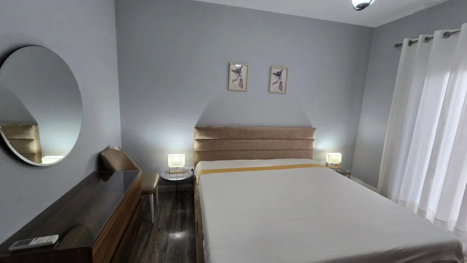 🏢Rrethrrotullimi i Saukut,Rruga Xhebrahimet jepet me qera apartament 2+1,me siperfaqe 115𝐦2,i mobiluar.Apartamenti organizohet ne ambient ndenje,kuzhine gatimi e ngrenie,2 dhoma gjumi me krevat matrimonial,garderob,1 tualet dhe 1 ballkon.Ndodhet ne katin e 2-te nje te pallati pa ashensor.