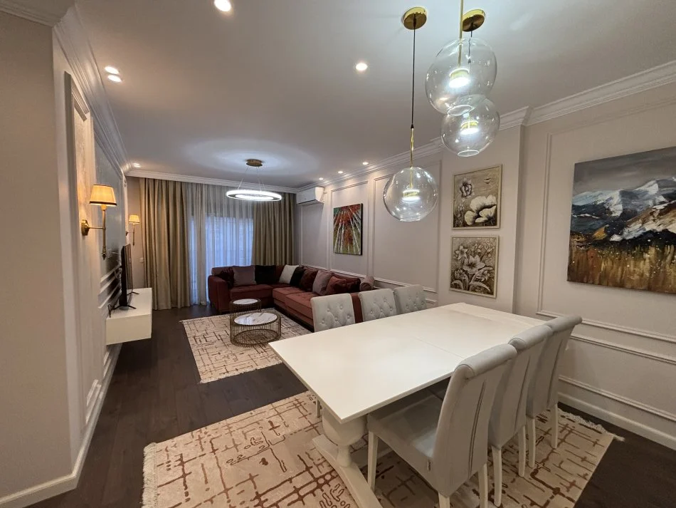 Tek Dritan Hoxha, prane Kupoles, ne kompleksin E88, jepet apartament me qera, 2+1, me siperfaqe 111 m2, kati 3, pallat i ri me ashensnor, 2 tualete, 2 ballkone, parket, kondicioner, i mobiluar ne menyre bashkohore. K.L
