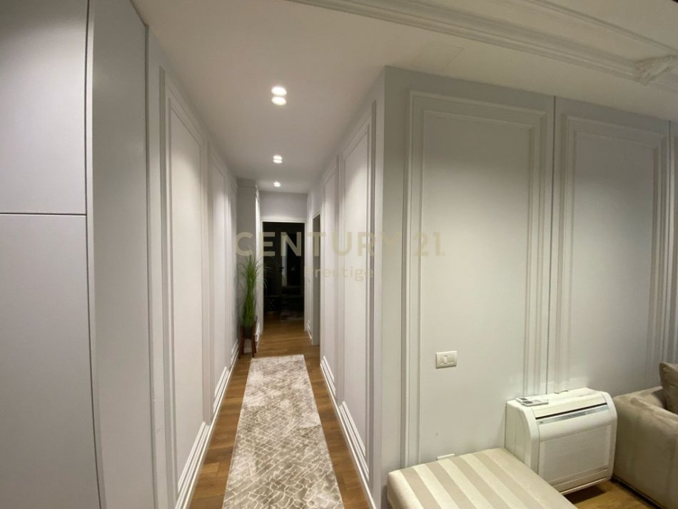 Apartamenti eshte i vendosur ne katin e 3, te nje ndertimi te ri, buze rruges kryesore, me nje siperfaqe totale prej 140 m2.