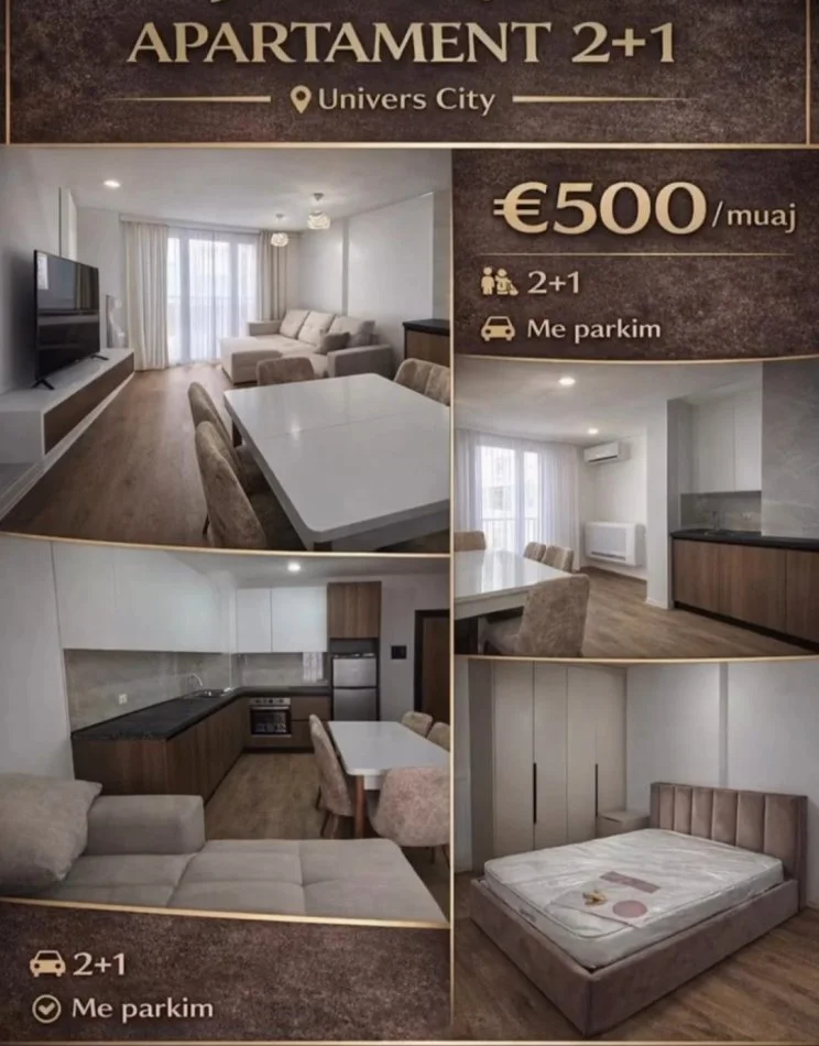 • Tirane, jepet me qera apartament 2+1+Ballkon Kati 4, 80 m² 500 € (UNIVERS CITY, QTU)
