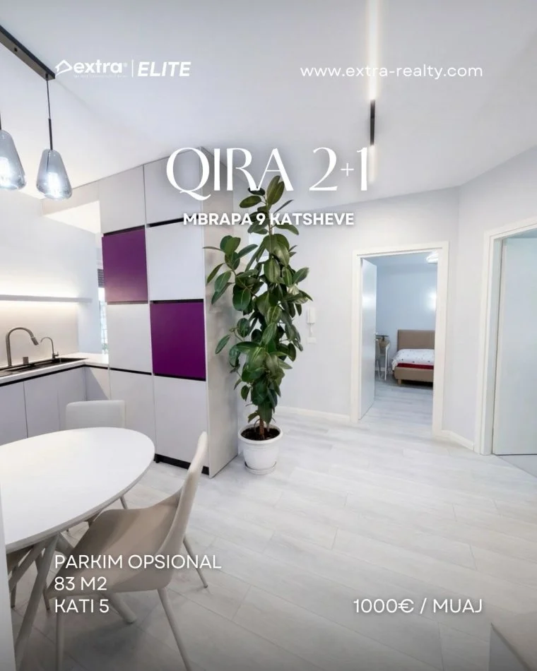 • Tirane, jepet me qera apartament 2+1+Ballkon Kati 5, 83 m² 1.000 € (9 kateshet)