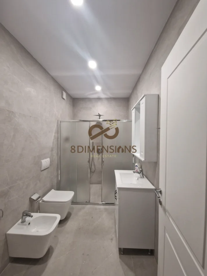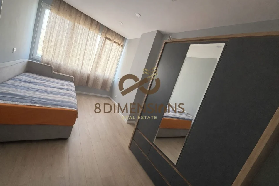 Prona ka nje organizim teper funksional: 2 dhoma gjumi, sallon ndenje, ambjent ngrenie, kuzhine, tualet, ballkon. korridor, mobiluar dhe me elektroshtepiake te reja, ashensor. Specifikat: Jepet me qera i apartment i ri i mobiluar. E gjithe shtepia e eshte ne gjendje shume te mire. Parket, termoizolim, hidrosanitare te reja, dritare plastike me dopio xhama.