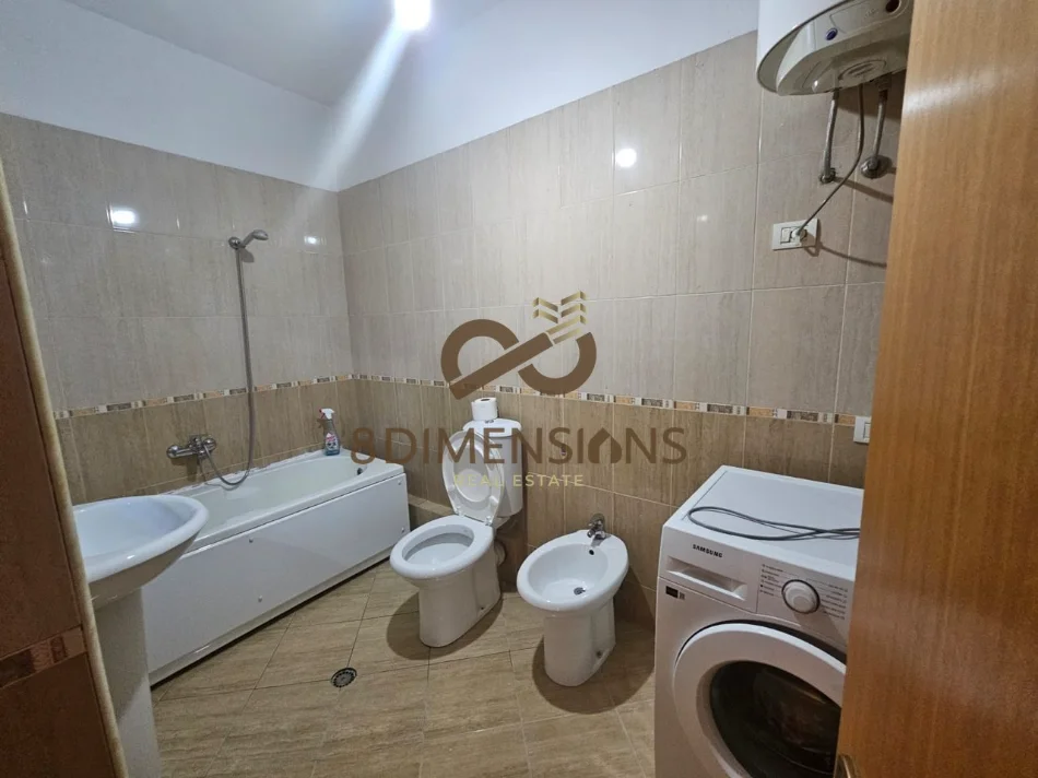 Prona ka orientim me diell dhe nje organizim teper funksional 2 dhoma gjumi, sallon, kuzhine me vet,koridor shperndares te te gjitha dhomave, 2 tualete, ballkon me dalje nga salloni.Jepet me qera e mobiluar ne menyre bashkekohore .