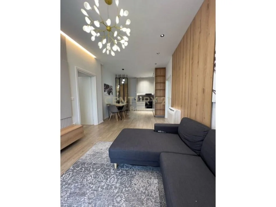 - Kuzhinë moderne dhe funksionale me pajisje të integruara dhe hapësirë për gatim.