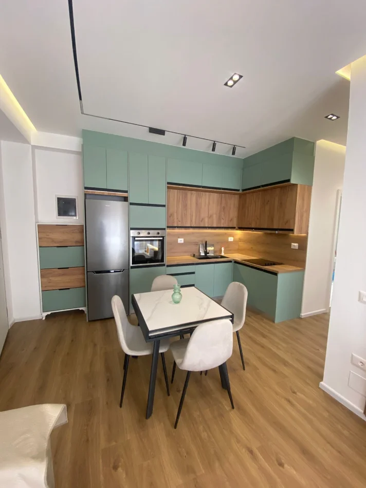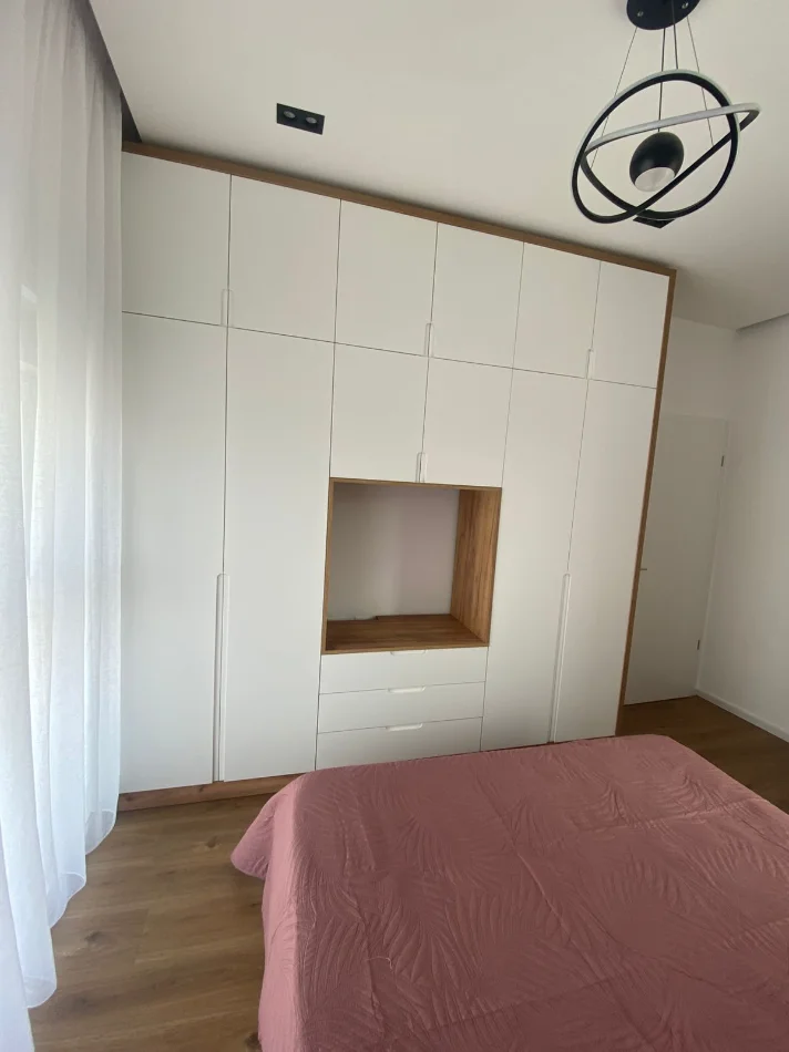 Jepet apartament 2+1 me qera. Apartamenti eshte i ri , ne pallat te 2026, i sapo mobiluar me arkitekt, me tavane te varura, mobilim modern dhe kodicioner. Tualet me dritare. Mundesi per parkim me cmim extra.
