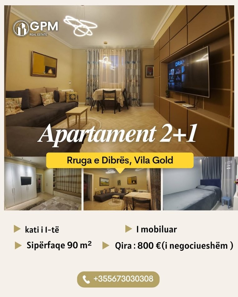 Jepet me qira apartament modern 2+1 tek Rruga e Dibrës, Vila Gold!