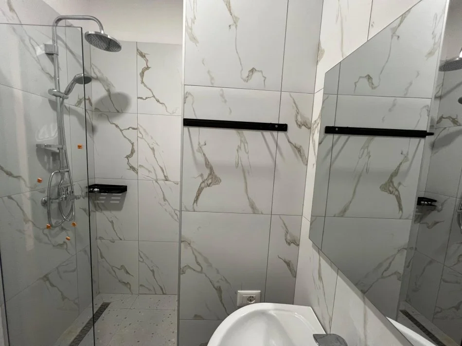 Te ish Stacioni i Trenit, Rruga Jordan Misja, prane Kompleksit Marga, jepet me qera apartament 2+1, me siperfaqe 100 m2, kati i 10, pallat i ri me ashensor, korridor, 2