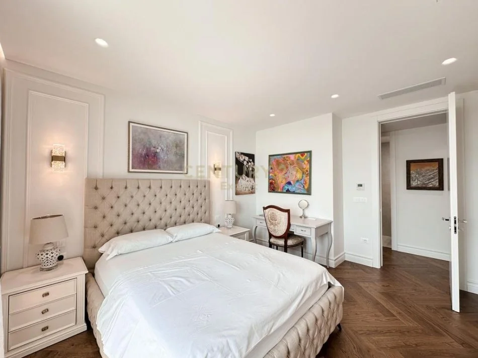 Në një nga rezidencat më të kërkuara në Tiranë, ju prezantojmë këtë apartament modern, i pozicionuar në katin e 10-të të godinës. Apartamenti ka një sipërfaqe neto prej 114 m² dhe bruto 133 m², duke ofruar hapësirë dhe komoditet maksimal për një jetesë cilësore.