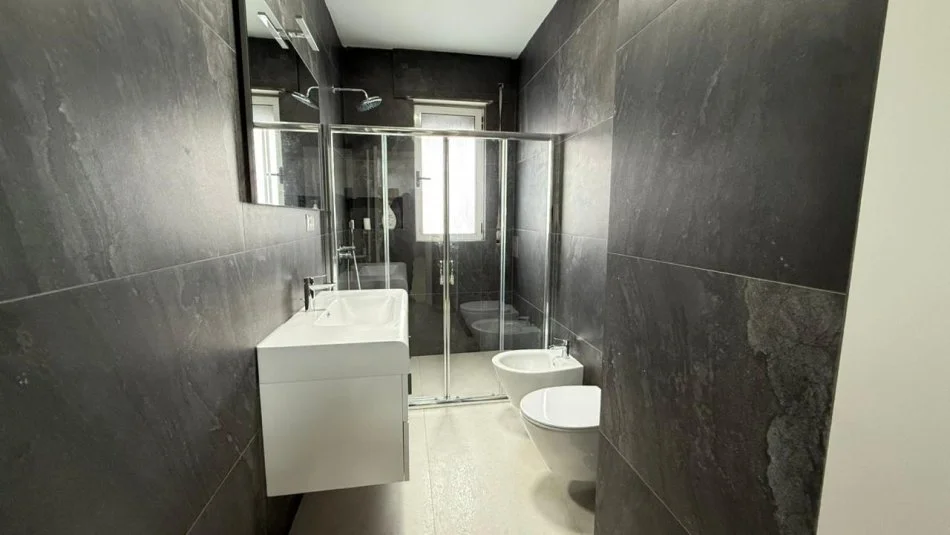 Sipërfaqe: 130 m² Mobilim: modern, funksional dhe i kuruar në detaje Ambient: i ndriçuar, komod, ideal për familje ose profesionistë Qira mujore: 1.200 €