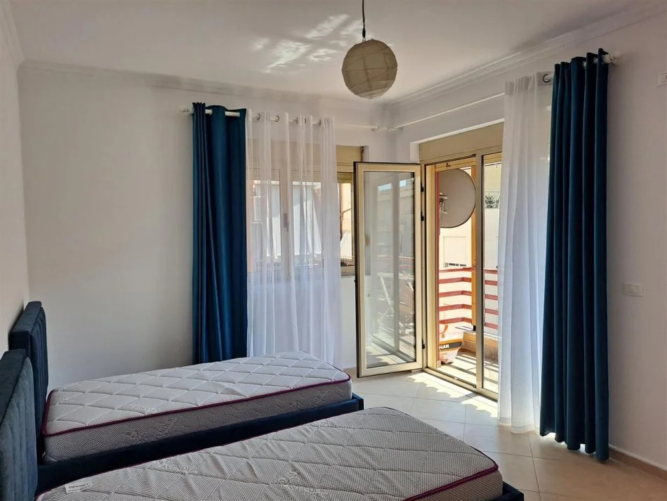 Tek Liqeni i Thate, rruga Peti, prane Hotel Sokratit, jepet me qera apartament 2+1, me siperfaqe 110 m2, kati i 4, pallat i ri, me ashensor, i mobiluar , tualet
