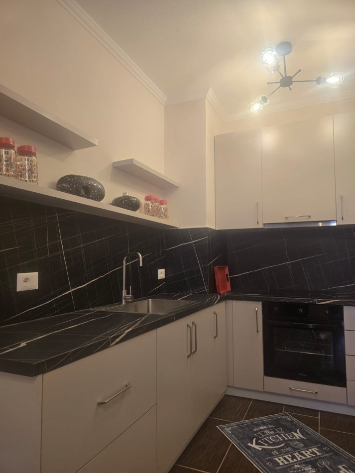 Apartamenti ofron një hapësirë të bollshme dhe funksionale me sallon të madh, kuzhinë të përbashkët, dy dhoma gjumi të bollshme, dy banjo dhe ballkon. Mobilimi është modern dhe i ri, duke ofruar një ambient të qetë dhe komod për jetesë. Ndodhet në Yzberisht, një zonë e qetë dhe me akses të lehtë në shërbime dhe transport. I përshtatshëm për familjarë ose individë që kërkojnë rehati dhe komoditet maksimal.