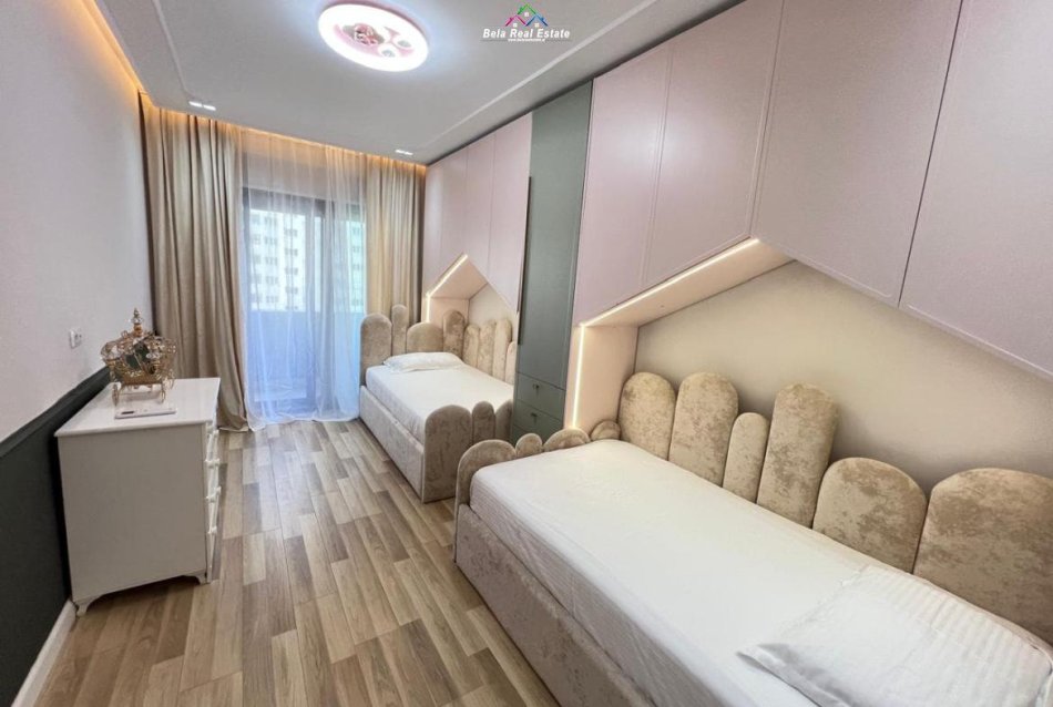 Ne Astir, rruga Feizi Hizmo, tek Oasis Residence, jepet me qera apartament 2+1, me siperfaqe 117 m2, kati i 7, pallat i ri, me ashensor, 2 tualete, ballkon, par
