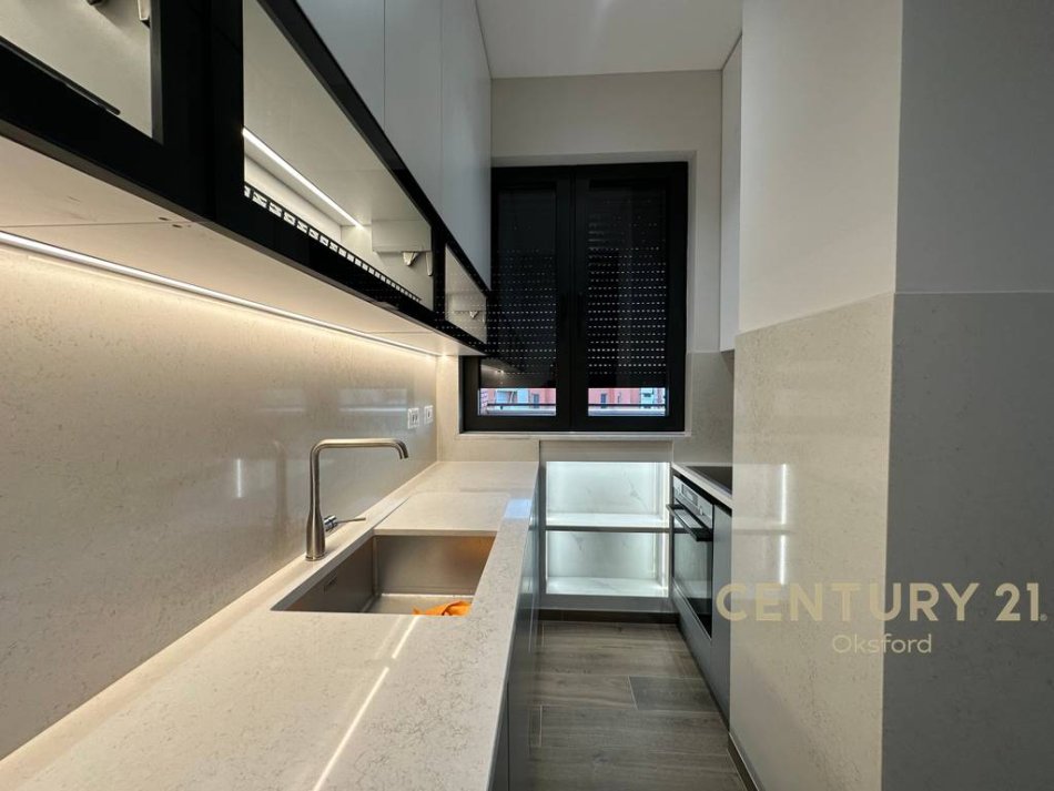 Ofrohet për qira një apartament i ri, i pabanuar më parë, i ndodhur në katin e 8-të të një godine moderne, të mirëadministruar dhe të pajisur me ashensor.