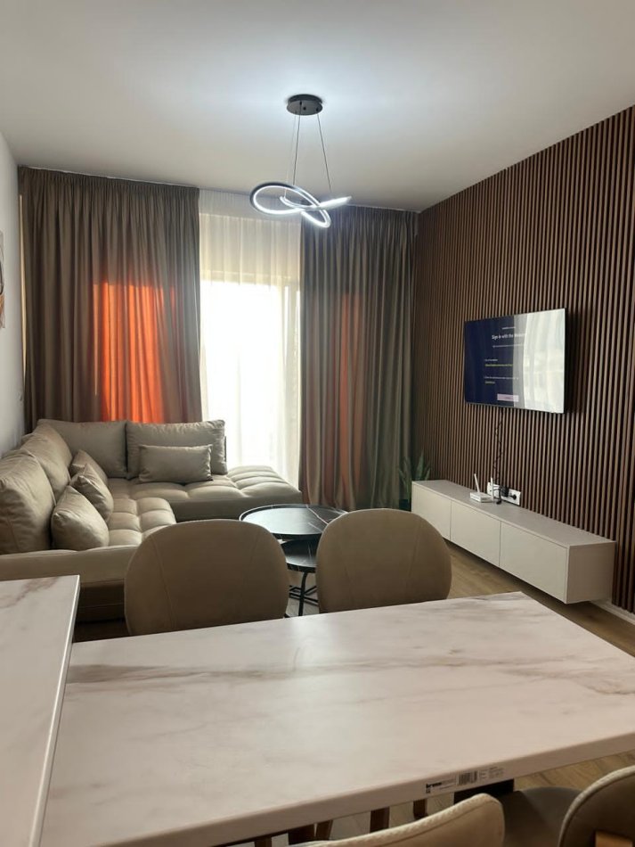 Apartamenti ndodhet në katin e 8-të të një ndërtese të re (viti 2025), me dy ashensorë dhe standard të lartë ndërtimi. Totalisht i mobiluar rishtazi, me pajisje moderne dhe parket cilësor në çdo ambient.