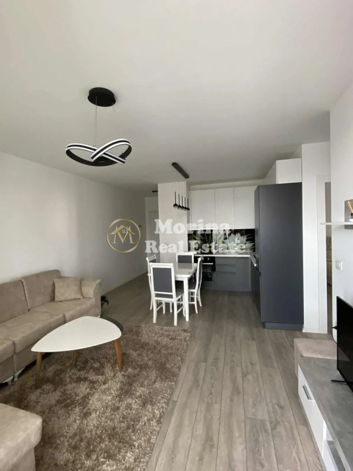 Jepet me qera apartament 2+1+Parkim , me një sipërfaqe prej 90m² dhe gjendet në katin e 8 të një pallati te ri. Hyrja ka organizim shume të mirë, ofrohet e mobiluar dhe përbëhet nga salloni i ndenjes, ambienti i gatimit, 2 dhoma gjumi, tualeti dhe ballkoni.