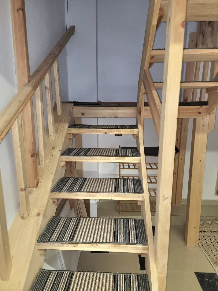 ▪️Kati përdhe përbëhet nga ambient ndenjeje (sallon) dhe tualet, ndërsa në katin e sipërm ndodhet dhoma e gjumit, e cila garanton privatësi dhe qetësi.